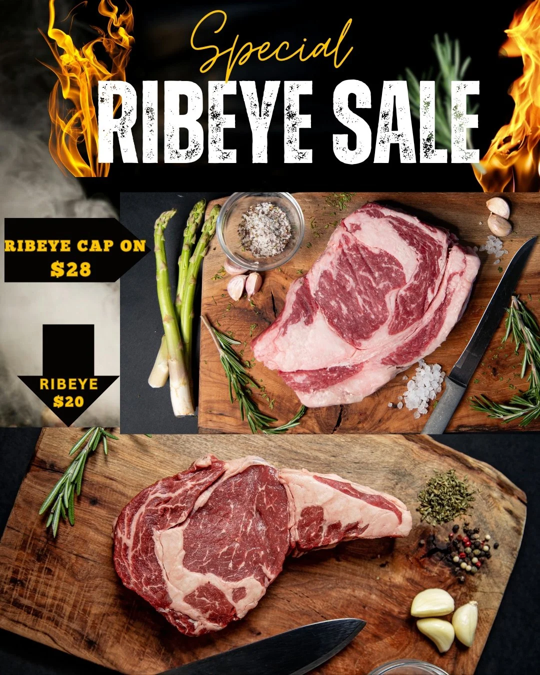 OUR BEEF WEEKLY SPECIAL - RIBEYES ON SALE NOW THROUGH SUNDAY OCTOBER 19TH from $20.00 Sale GROUND BRISKET $8.00 CHUCK ROAST from $24.00 RIBEYE - WITH FAT CAP Sale Price: $28.00 Original Price: $32.00 Sale RIBEYE Sale Price: $20.00 Original Price: $24.00 Sale PORTERHOUSE STEAK $48.00 T-BONE from $18.00 SIRLOIN from $12.00 FILET from $22.50 STRIP STEAK $16.00 DENVER $16.00 CHUCK EYE $12.00 FLAT IRON $14.00 Sold out BAVETTE STEAK from $20.00 Sold out PICANHA from $45.00 TOP INSIDE SIRLOIN from $14.00 PETITE TENDER $12.00 TRI - TIP from $20.00 CUTLETS (CHICKEN FRIED STEAK) from $8.00 FLANKEN RIBS $14.00 SHORT RIBS from $32.00 SKIRT STEAK (FAJITA) from $12.00 FLANK STEAK (FAJITA) from $14.00 Sold out GROUND BEEF $7.00 WHOLE BRISKET $100.00 STEW MEAT $8.00 STEAK LOVER'S BEEF BOX from $200.00 THE SAMPLER BEEF BOX $200.00 SOUTHWEST BEEF BOX $200.00 FAMILY BEEF BOX $150.00 THE GROUND BEEF BOX $125.00 THE GROUND BRISKET BOX $144.00 THE EVERYDAY STEAK BOX $100.00 THE BIG BOY BEEF BOX $350.00 Gift Certificates $25.00 PAGE 2